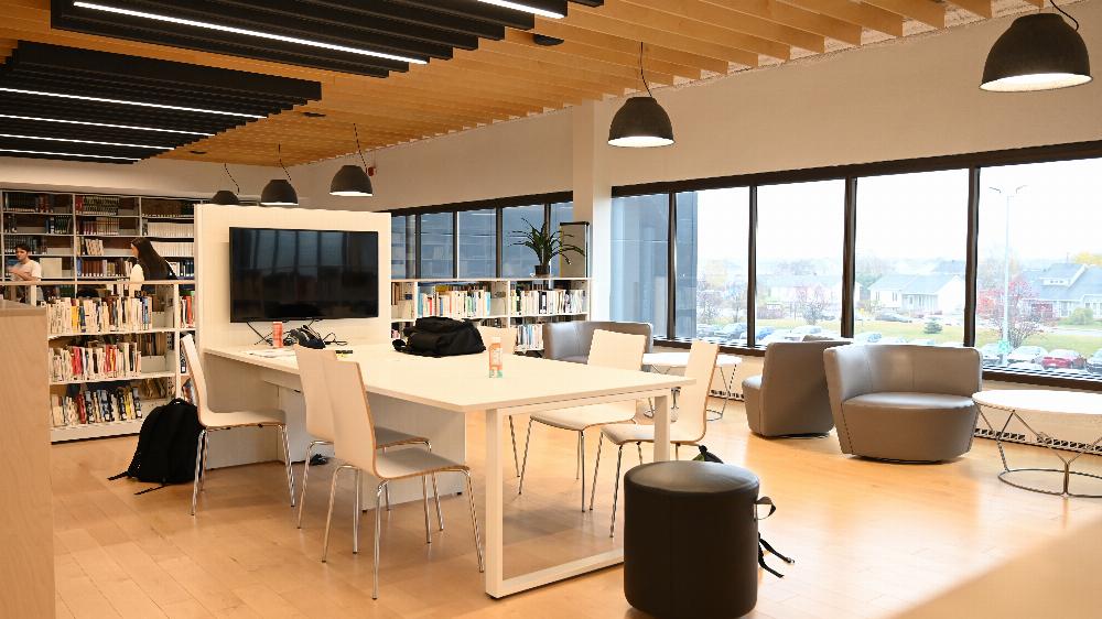 « Quand on a conçu la bibliothèque, on voulait que ça devienne un lieu de convergence. Au cégep, on a des étudiants, des enseignants, des employés, des chercheurs. Tout le monde utilise la bibliothèque, professionnels et étudiants, aussi bien pour les pauses que pour le travail. Tout le monde se mélange davantage. On est un petit cégep et on a cette proximité-là les uns avec les autres », explique Caroline Côté.