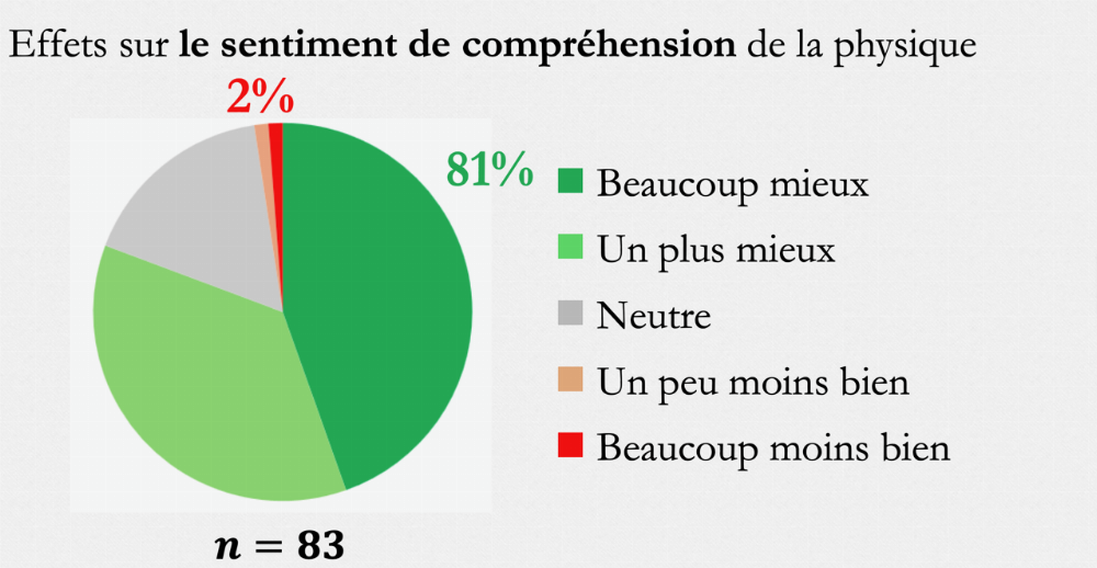 Il leur a demandé s’ils maîtrisent mieux la physique après s’être préparés à un examen par entrevue que pour un examen traditionnel. « Les résultats sont clairs. La majorité des étudiants disent que c’est la première fois qu’ils ont l’impression de comprendre ce qu’ils font dans un cours de physique. »
