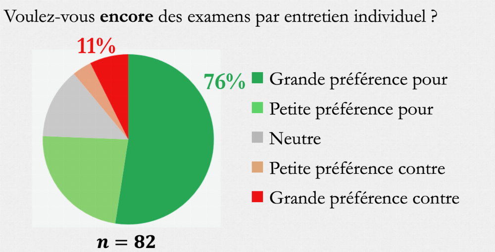 Le premier plan de cours sans examen papier et 100 % par entretien individuel a suscité un vent de panique chez les étudiants. Mais en leur faisant bien comprendre cette initiative et surtout après une première expérimentation, la majorité des étudiants ont trouvé la formule moins stressante.