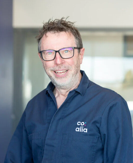 En 2009, Pascal Vuillaume rejoint COALIA, le CCTT spécialisé en matériaux avancés, plasturgie et minéralurgie. Il y trouve un environnement où son bagage académique peut s’incarner dans des projets aux retombées tangibles. Il débute comme chargé de projets, puis devient rapidement directeur de la recherche en plasturgie, poste qu’il occupera pendant 14 ans.