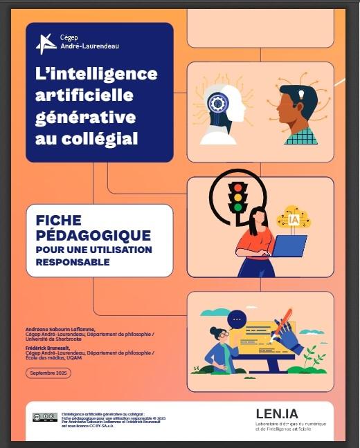 La Fiche pédagogique pour une utilisation responsable de l’intelligence artificielle au collégial est un projet d’innovation pédagogique financé par le Cégep André-Laurendeau. Cette réalisation des professeurs Andréane Sabourin Laflamme et Frédérick Bruneault s’inscrit dans le cadre des travaux d’un laboratoire de recherche, le Len.IA. Depuis plusieurs années, ce laboratoire s’intéresse aux enjeux associés au numérique et à l’intelligence artificielle.