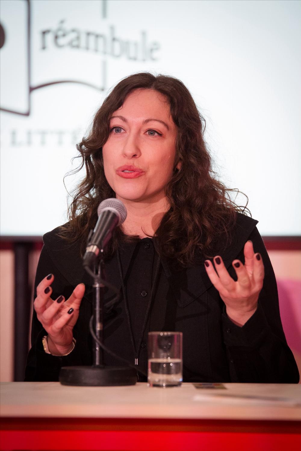Maude Jarry et les quatre autres finalistes – Sébastien Dulude, Akim Gagnon, Francis Ouellette et Cristina Vanciu – ont participé à une table ronde sur l’art de capter l’attention du lecteur par les premiers mots et la page couverture. « C’est vraiment un beau cadeau qui m’a été fait par les éditions de Ta Mère d’avoir proposé une couverture aussi excessive dans sa représentation du roman. Quand on lit le livre, on se rend compte que les dessins sont presque des easter eggs qui révèlent des éléments qu’on n’avait pas vus au départ », a confié Maude Jarry.