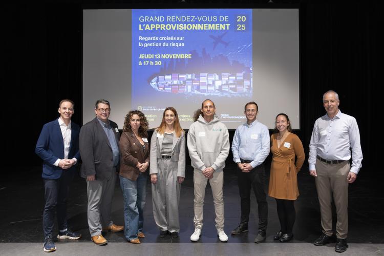 C'est dans une atmosphère à la fois conviviale et professionnelle que s'est déroulée, le 13 novembre dernier, la 5e édition du Grand rendez-vous de l'approvisionnement, organisée par la formation continue du Collège de Bois-de-Boulogne en collaboration avec Chaîne d'approvisionnement Canada. Cette soirée a réuni plus de cent personnes, en présentiel ou à distance : des étudiantes et étudiants, des finissantes et finissants, des professionnelles et professionnels du secteur ainsi que des membres du personnel du Collège.