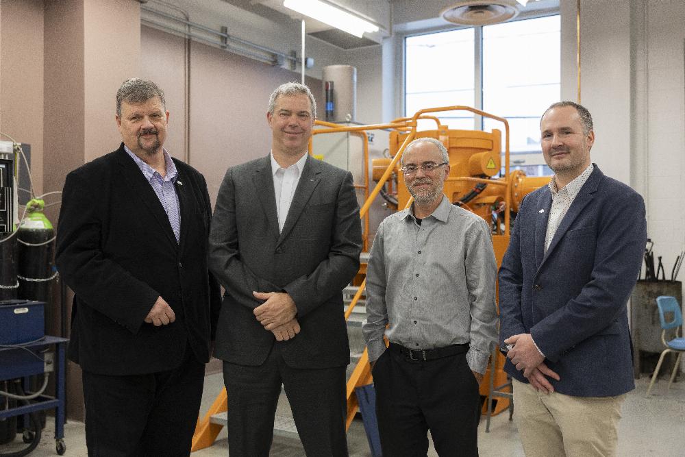 De gauche à droite sur la photo : Gheorghe Marin, directeur général du CMQ, Eric Milette, directeur général du Cégep de Trois-Rivières, Jean-François Viens, directeur général du C2T3 et Jean-Philippe Jacques, directeur général d’Innofibre