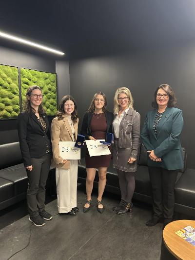 De gauche à droite : Mylia Arseneault-Monette, Émilie-Ann Juteau, Ely St-Germain, Catherine Boulanger, directrice des études et Diane Dumas, directrice générale et des affaires corporatives. Sorel-Tracy, le 18 novembre 2025. – Le samedi 8 novembre, lors d’un événement organisé en